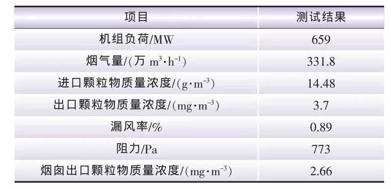 表2 平頂山電廠2號爐超淨電袋性能測試結果