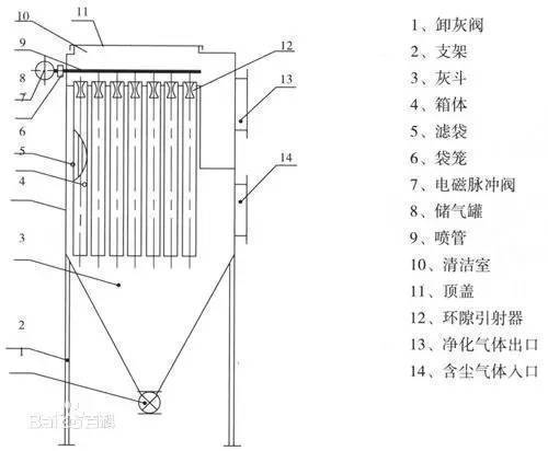 袋式除(chú)塵器結構(gòu)圖: