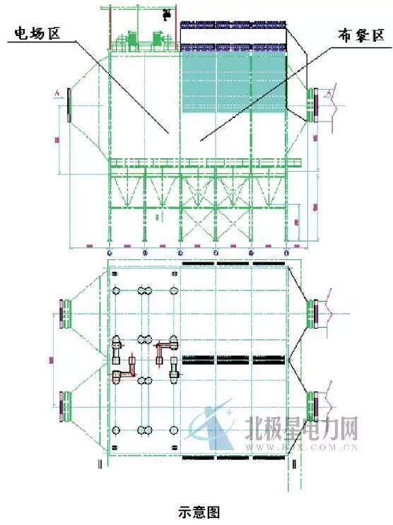 4.3.1 改造後電袋複合式除(chú)塵器結構(如示意圖(tú))。