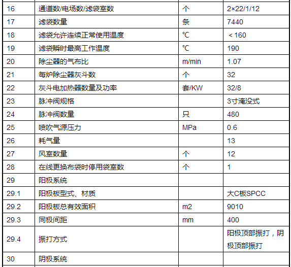 4 在原電除塵(chén)器的第二、三、四電場原立柱頂麵水平鋪設花板,安裝濾袋、籠骨和噴吹係統,作為布(bù)袋除(chú)塵區。布袋(dài)除塵區每台爐在寬度方向分為(wéi)4列、每列分為3個室。每台爐分24個清灰(huī)單元、共480個三寸脈衝閥、共7440條濾袋。布袋除塵采用外濾式,噴吹係統選用(yòng)固定行(háng)噴吹清灰技術。每室1個人孔門,每個室之(zhī)間相互獨立。在運行中如果(guǒ)某個室出現故障,關閉該室的離(lí)線閥、打開人孔門實現(xiàn)不停爐分室檢修(xiū)(即可以實現不停爐進行更換布袋操作);也可以在(zài)運(yùn)行時關閉某個室離線閥,實現離線清灰,保證清灰效果。