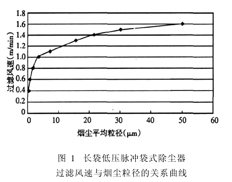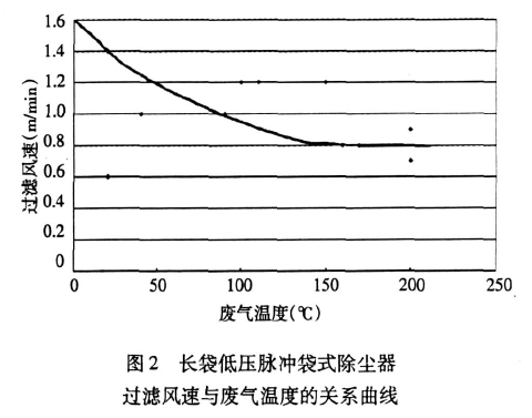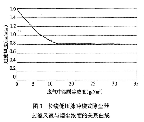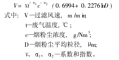 該式雖是通過曲線擬合得到的,但我們在2005年後設計脈衝除塵器時,其過濾風速的選取均是采用該模式計算,每台除塵器的除塵效果都達(dá)到了要求(除(chú)塵效率達到99.9%或排放口(kǒu)濃度小於30g/Nm³)。