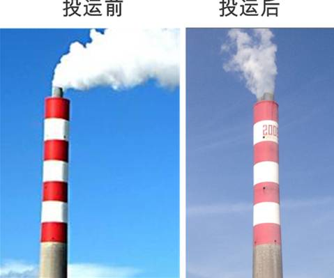 圖(tú)5國電北侖電廠#7機組WESP投運前、後煙囪(cōng)排放對比圖