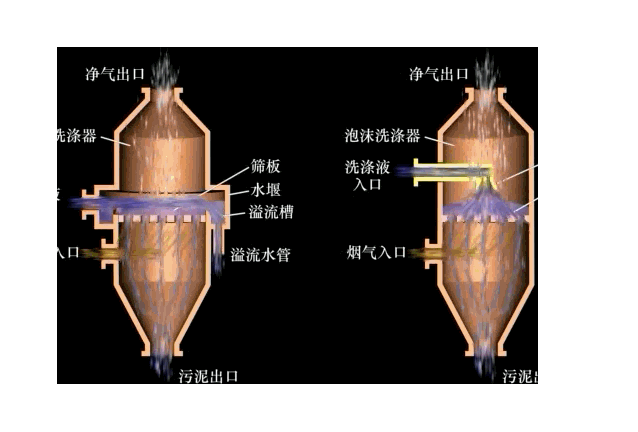 在逆流式噴霧塔中(zhōng),含塵氣(qì)體向上運動,液滴由噴(pēn)嘴噴出向下運動。因液(yè)滴和顆粒之間的慣性碰撞、攔截和凝聚(jù)等作用,使較大的的粒(lì)子被液滴捕集。噴霧塔具有結構簡單、壓(yā)力(lì)損失小、操作穩定等特點,經常與高效洗滌器聯用捕集粒徑較大的(de)顆(kē)粒(lì)。